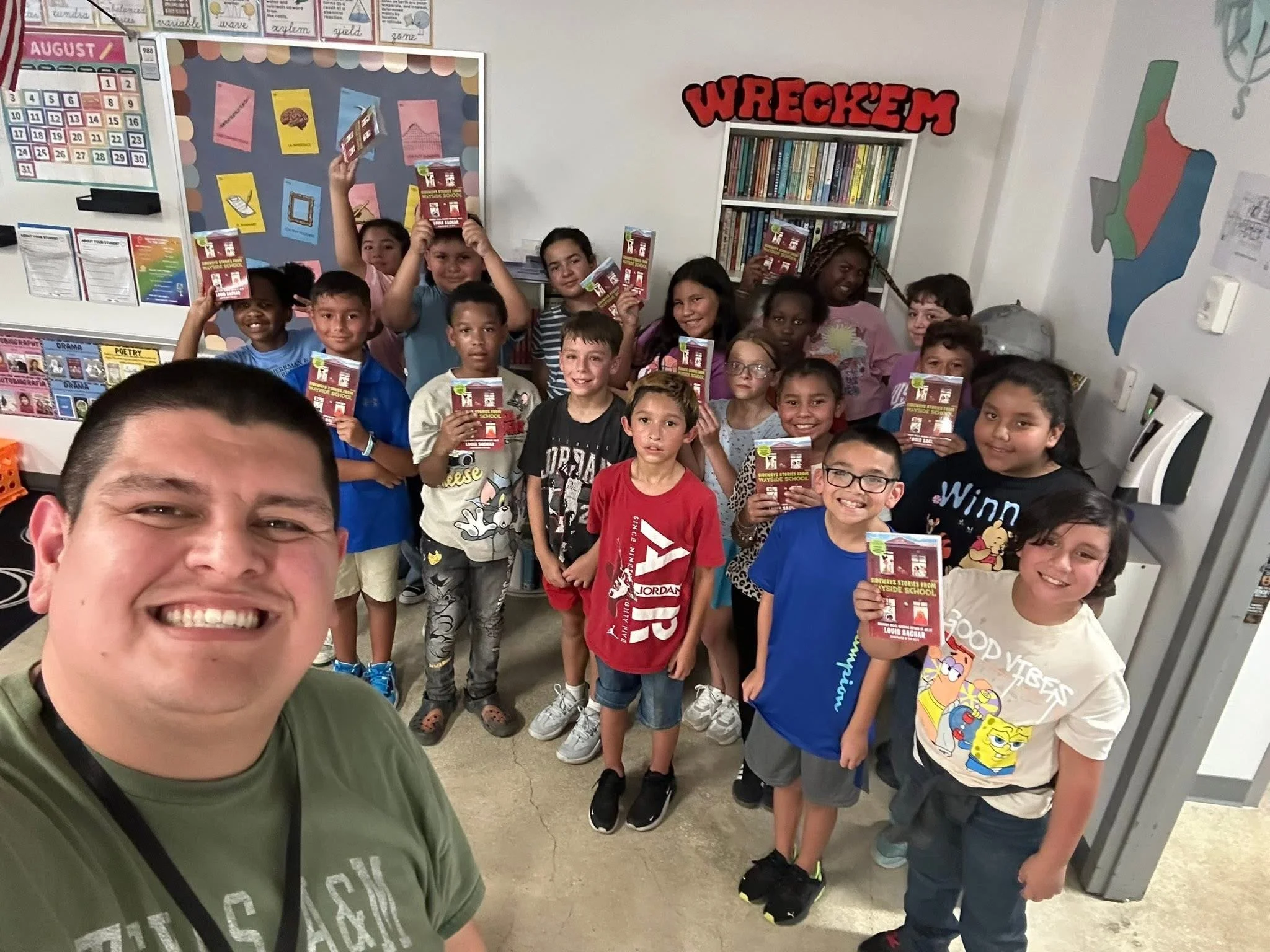 Micah Palomo kicked off the school year with a book giveaway! His fourth grade students are so excited to read Sideways Stories from Wayside School.