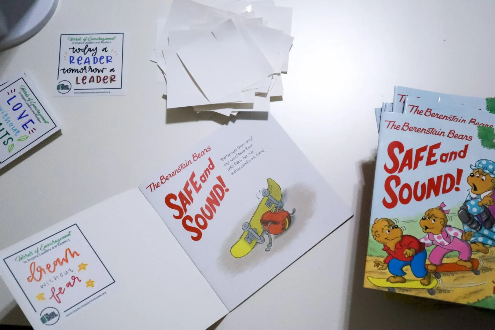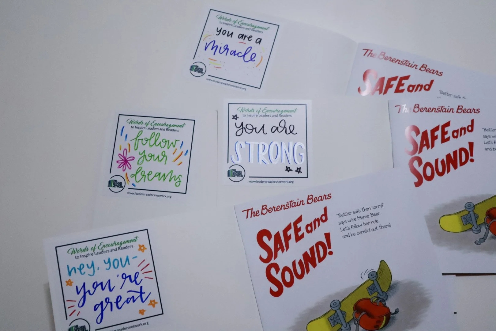 Through the Words of Encouragement Project, The Leaders Readers Network (TLRN) partners with educators, students, and community members to spread kindness and inspire young readers. Volunteers write encouraging messages on stickers that are placed inside brand-new books, which are donated to students at Title I schools.